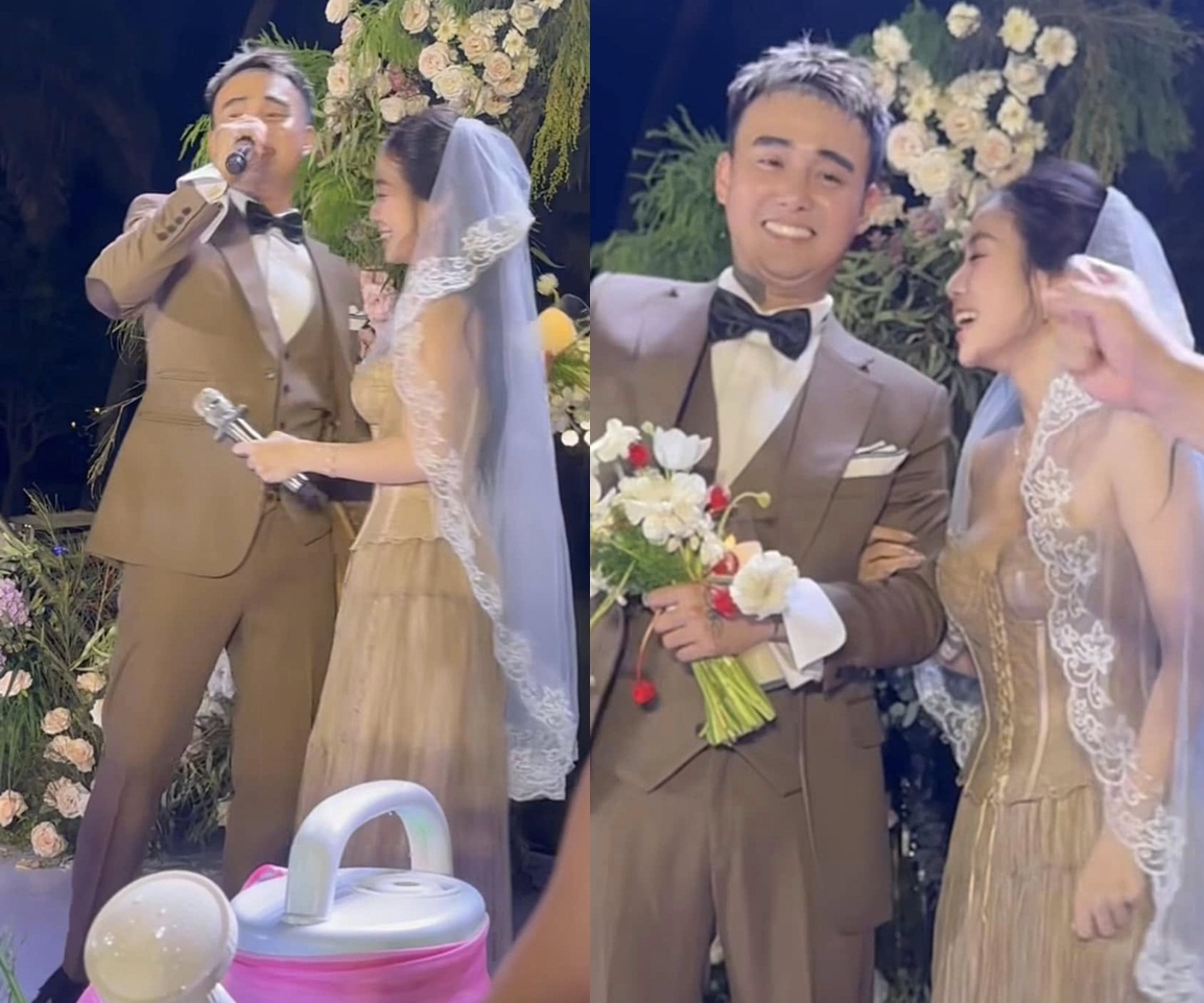 Hình ảnh Đạt G và Cindy Lư mặc trang phục như cô dâu chú rể xuất hiện trong đám cưới khiến nhiều người bất ngờ.
