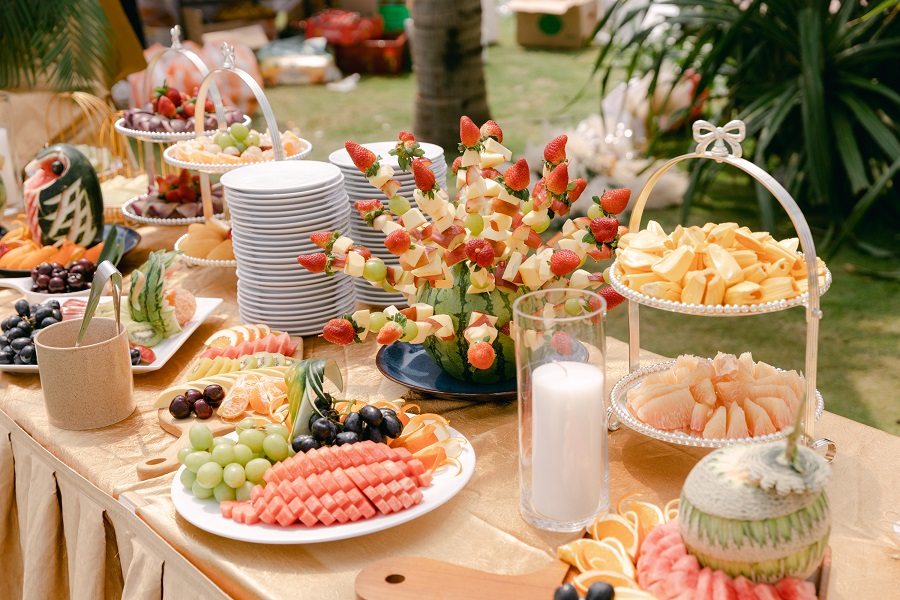 Để đảm bảo sự hài lòng tối đa cho khách mời dự tiệc cưới, Vinpearl Resort & Golf Nam Hội An đã huy động 500 nhân viên và mời 50 đầu bếp người Ấn dày dặn kinh nghiệm phục vụ ẩm thực xuyên suốt 4 ngày 3 đêm. Đặc biệt, bên cạnh những món ngon truyền thống thiết đãi yến tiệc của người Ấn Độ, các món ăn đặc trưng của Việt Nam cũng được cặp đôi và gia đình yêu thích lựa chọn đưa lên bàn tiệc mời khách: phở cuốn chay Hà Nội, chả giò chay Việt Nam, bánh tráng cuốn, chè Bà ba, bánh dừa… .