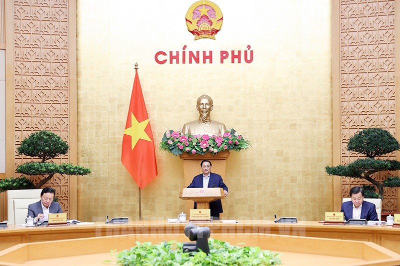 Thủ tướng Phạm Minh Chính chủ trì và phát biểu tại phiên họp Chính phủ chuyên đề về xây dựng Luật đất đai và Luật nhà ở sửa đổi. (Ảnh VGP)