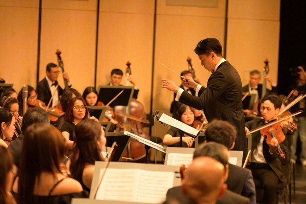 Nhạc trưởng Trần Nhật Minh – người dẫn dắt dàn nhạc chạm đến cảm xúc khán giả trong đêm gala.