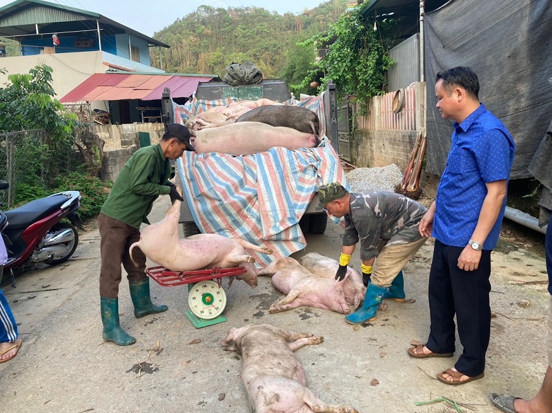 Tiêu hủy lợn mắc dịch tả lợn Châu Phi tại xã Dương Quang. Ảnh: backancity.gov.vn