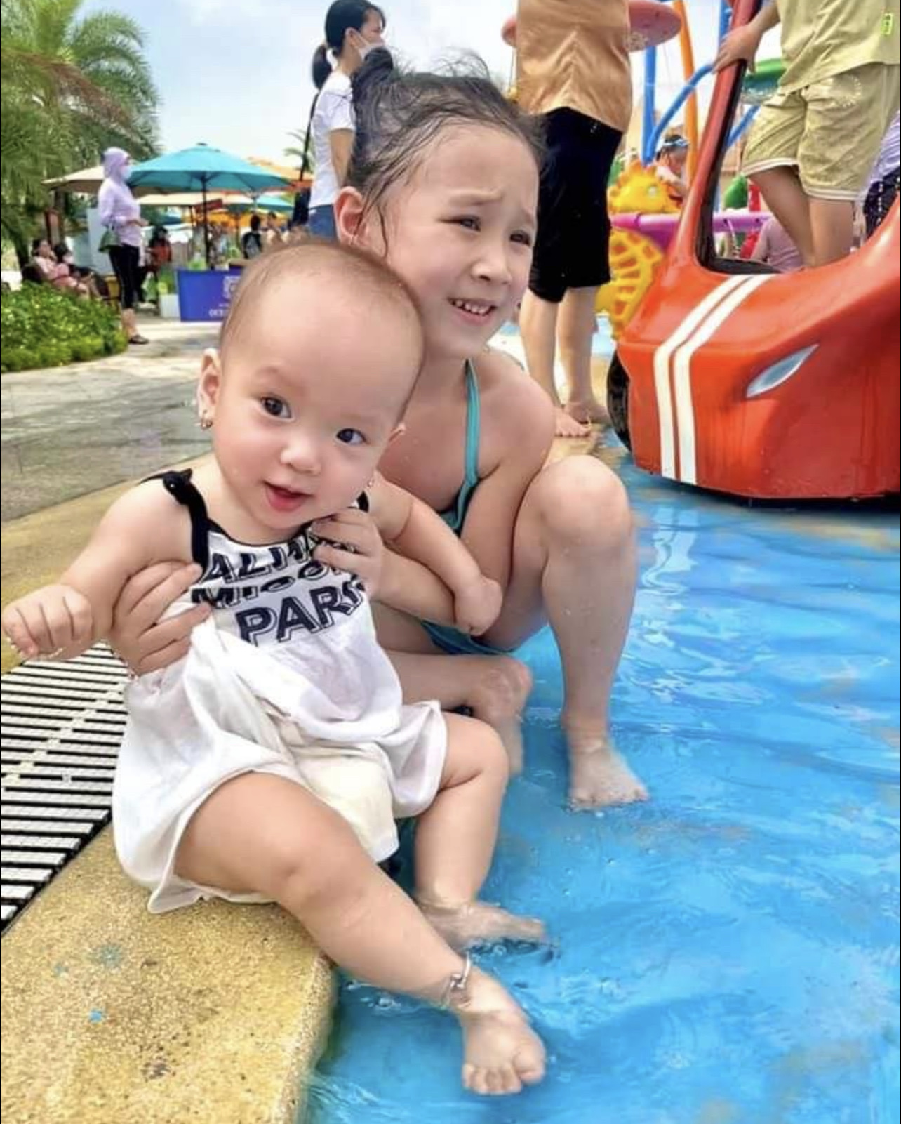 Bé Mía thích thú tại bể bơi
