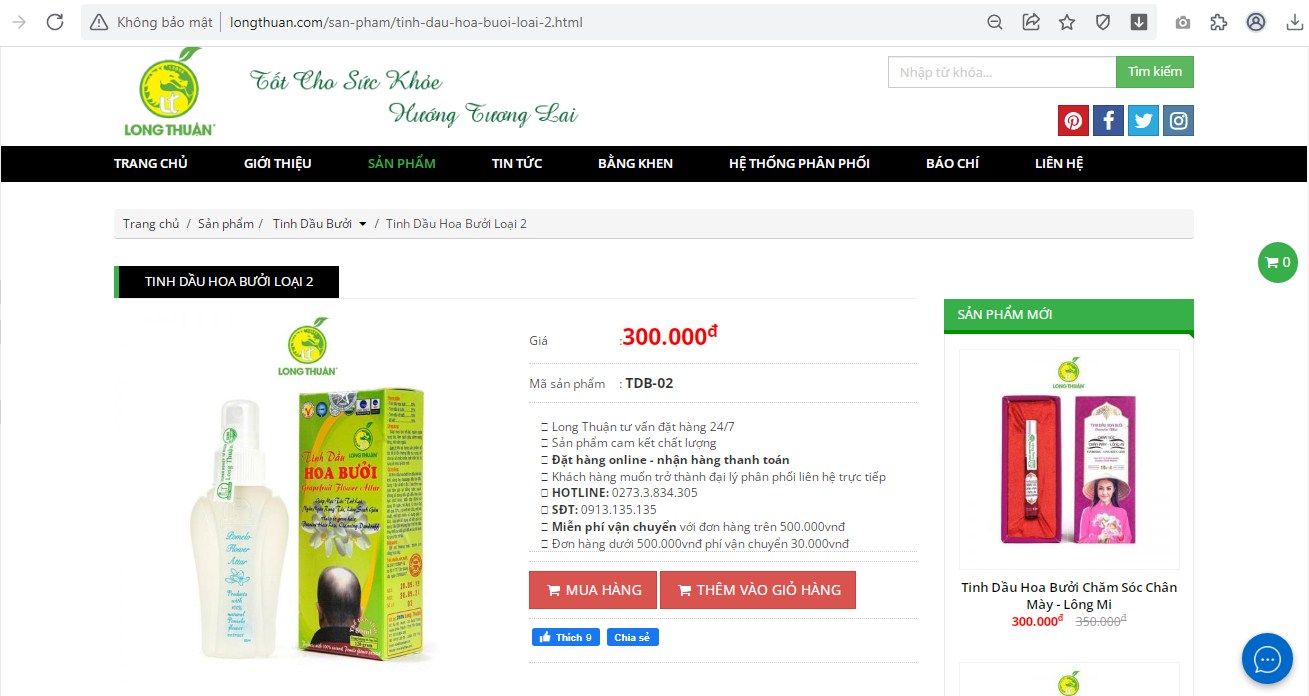 Theo tìm hiểu, sản phẩm Tinh dầu hoa bưởi được quảng cáo với công dụng chuyên trị hói đầu, làm tóc mọc trở lại, ngưng rụng tóc - gãy tóc, sạch gàu, viêm nang lông, nấm ngứa... Giá bán lẻ của môi sản phẩm Tinh dầu hoa bưởi được bán với giá 300 nghìn đồng/lọ 80ml.