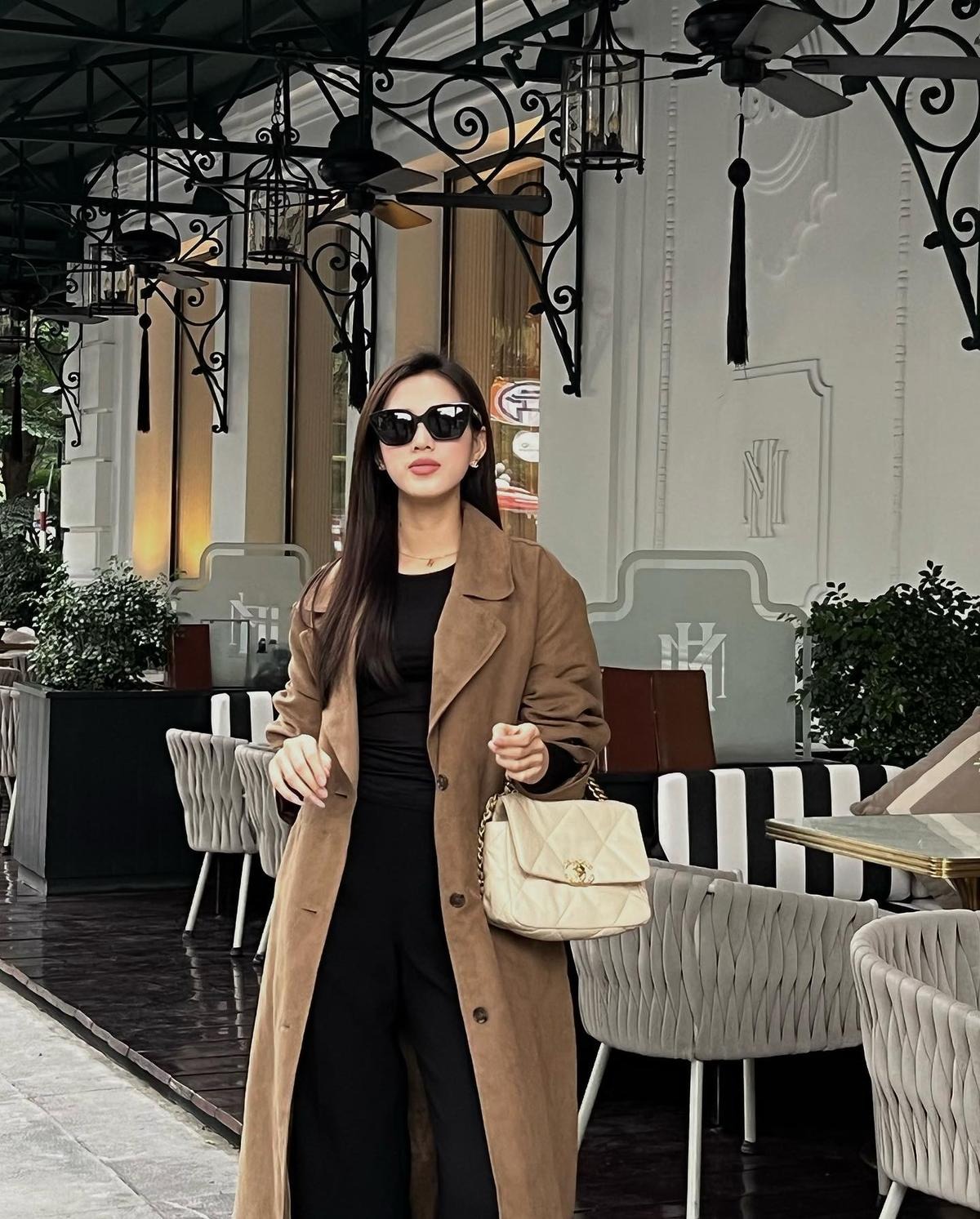 Chiếc Chanel 19 giá khoảng 160 triệu đồng hoàn thiện vẻ trang nhã mà vẫn hợp xu hướng cho mỹ nhân xứ Thanh khi diện đồ công sở.