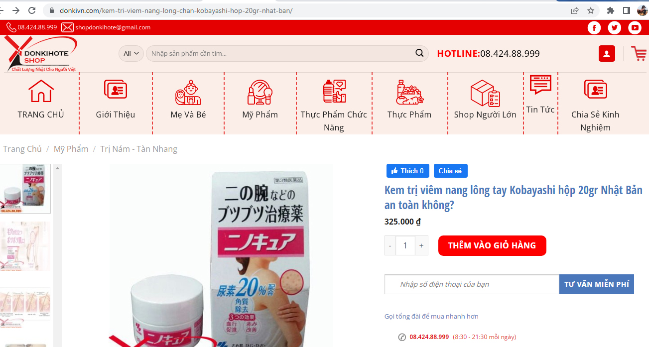 Từ phản ánh của người tiêu dùng, PV Thương Trường đã tìm hiểu một số website kinh doanh về mỹ phẩm, đơn cử như trang web https://donkivn.com/, PV nhận thấy không khó để đặt mua các sản phẩm mỹ phẩm kem trị mụn, kem đặc trị nám, gel trị thâm nách, hôi nách…