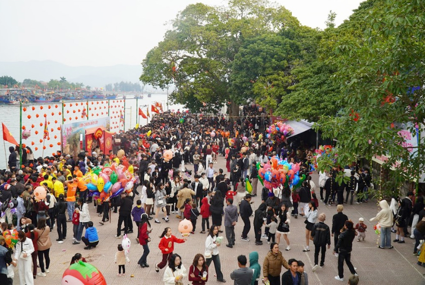 Dòng người tấp nập đổ về đền Cờn (thị xã Hoàng Mai) đi lễ, cầu bình an cho năm mới Ất Tỵ 2025