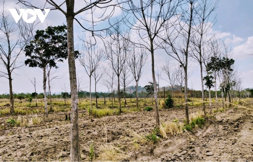 Một góc dự án trồng cao su trên đất rừng nghèo ở phía Tây tỉnh Gia Lai. Ảnh: VOV