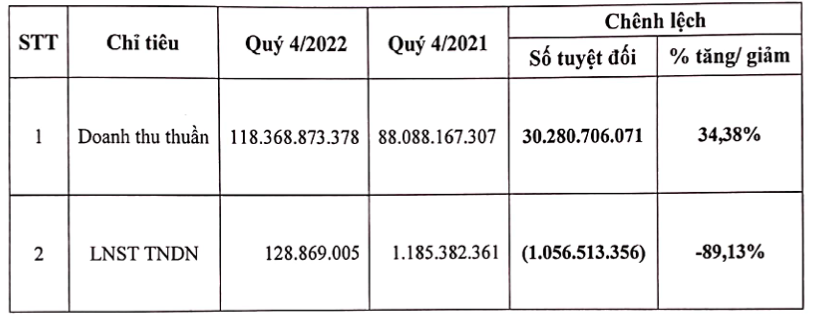 Về phía nguồn vốn, phải trả người bán ngắn hạn tăng gấp 3 lần lên hơn 4 tỷ đồng. Lợi nhuận sau thuế chưa phân phối giảm mạnh từ hơn 8 tỷ xuống còn gần 1,5 tỷ đồng.