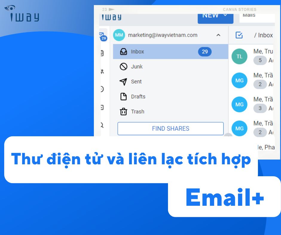 Được sự đồng hành của cộng đồng nguồn mở toàn cầu, đặc biệt là Zextras Italy - công ty hàng đầu Châu Âu về phát triển và cung cấp dịch vụ cho hệ thống thư điện tử nguồn mở, iWay đã phát triển, tuỳ chỉnh và đóng gói một giải pháp thư điện tử phù hợp với nhu cầu của các tổ chức, doanh nghiệp tại Việt Nam, với tên đăng ký chính thức là “Phần mềm thư điện tử tin cậy, bảo mật Email+”.