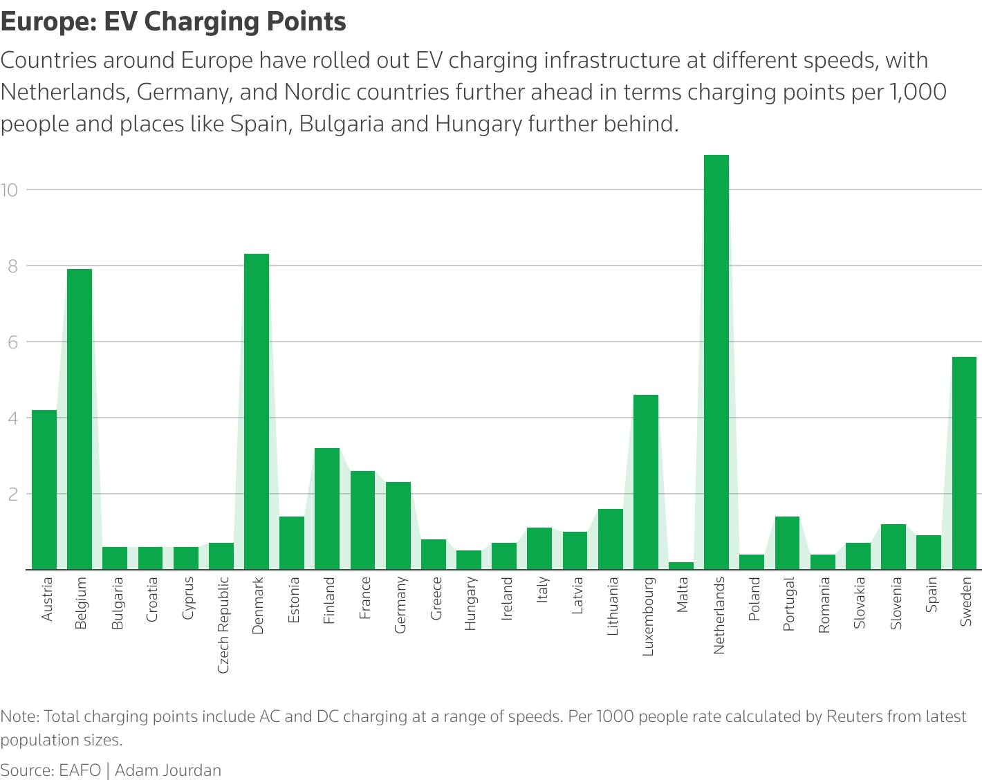 Cơ sở hạ tầng sạc xe điện ở châu Âu.