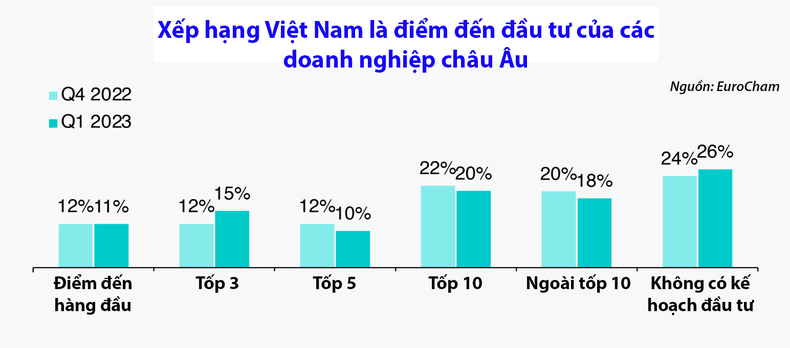 Theo EuroCham, Việt Nam vẫn là điểm đến thu hút mạnh mẽ dòng vốn FDI trong mắt các lãnh đạo doanh nghiệp châu Âu, với hơn 3% các nhà lãnh đạo cho rằng Việt Nam là 1 trong 3 trọng điểm đầu tư của họ trên toàn thế giới.