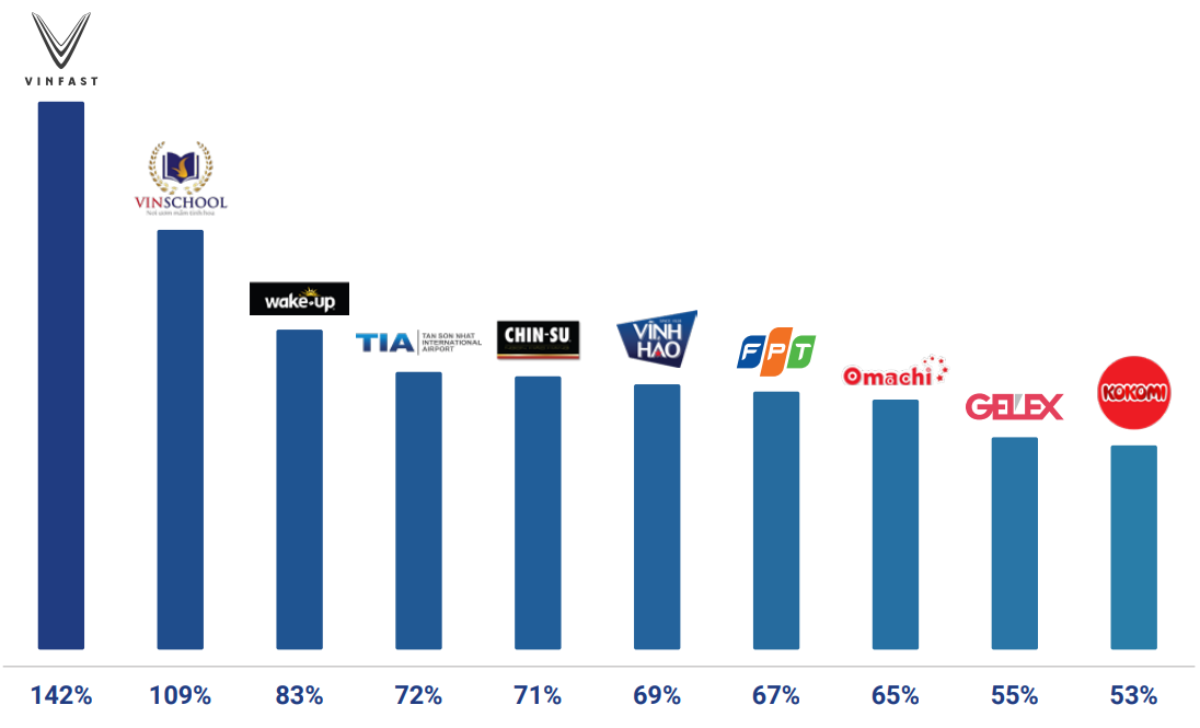 Với giá trị thương hiệu 148 triệu USD, GELEX thuộc Top 10 công ty gia tăng giá trị thương hiệu lớn nhất Việt Nam, bên cạnh những tên tuổi như: VinFast, Vinschool, Wake up 247, Chinsu, FPT …