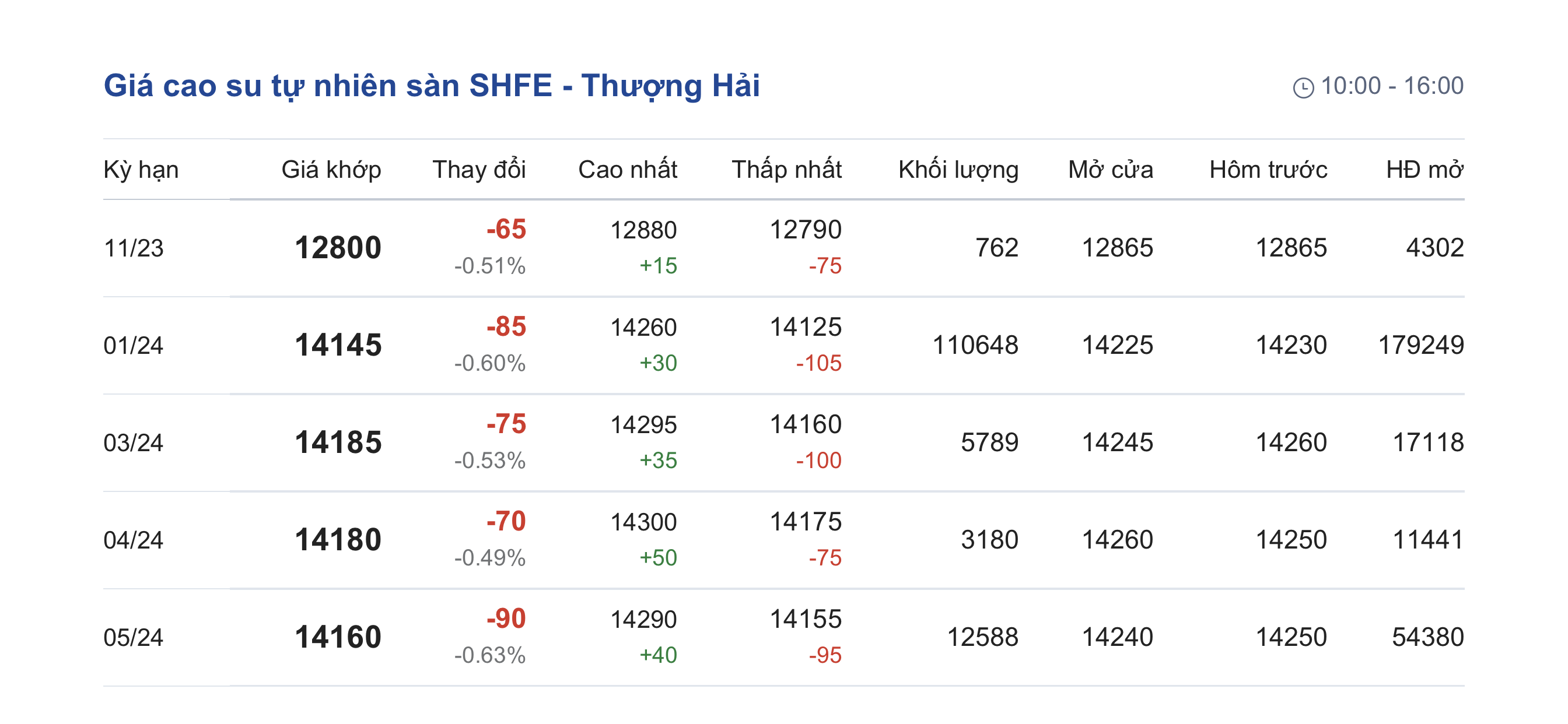 Giá cao su hôm nay 31/10, Giá cao su kỳ hạn trên sàn giao dịch SHFE đồng loạt giảm, mức điều chỉnh dưới 0,5%.