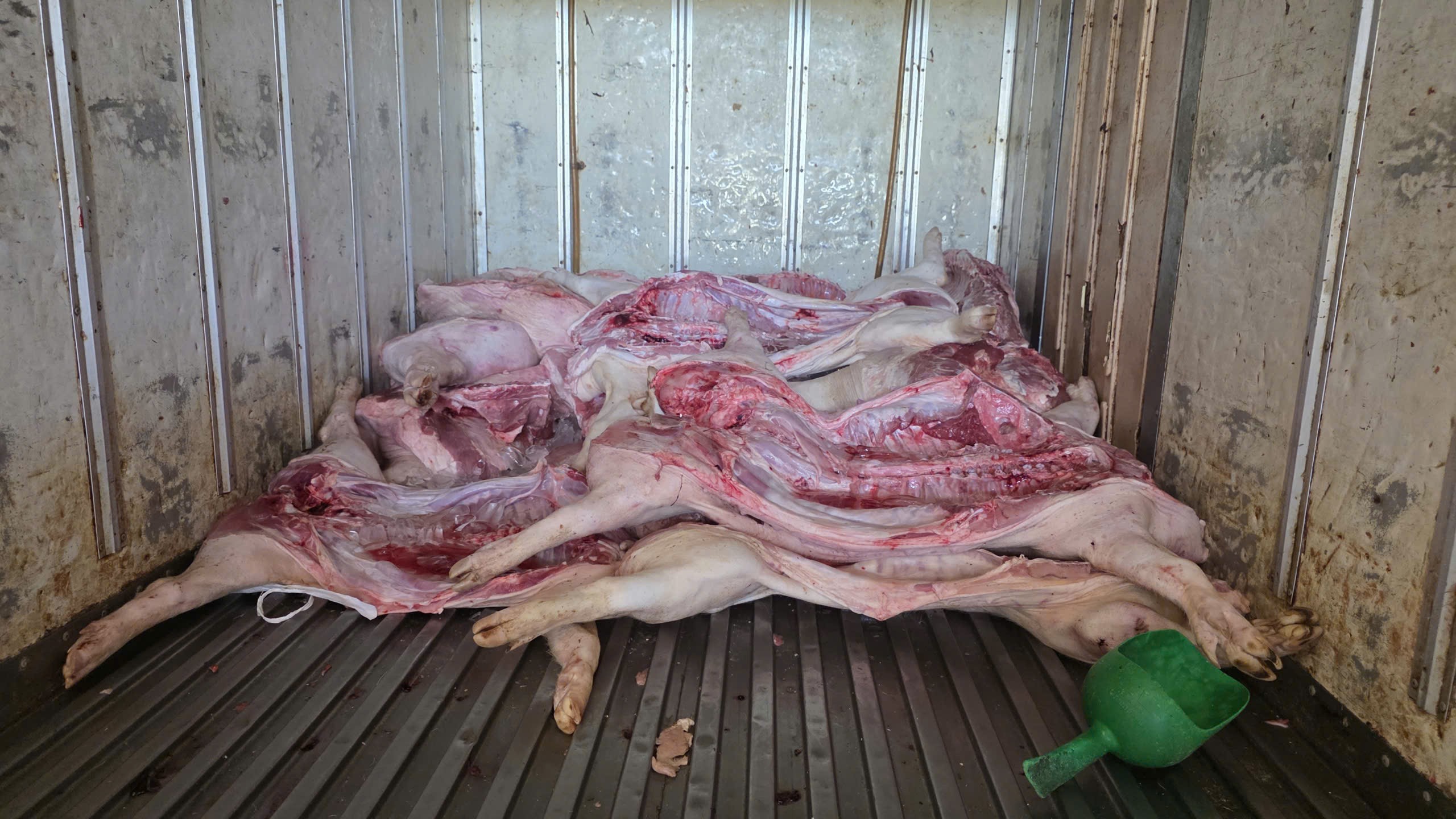 Thời điểm kiểm tra, tổ công tác phát hiện trên xe tải mang BKS 50H-208.56 có khoảng 220 con heo, tổng khối lượng khoảng 4,2 tấn. Trong đó, một số con có dấu hiệu nghi bị nhiễm bệnh với các vết xuất huyết trên da tại các vị trí như tai, bụng, một số con đã chết.