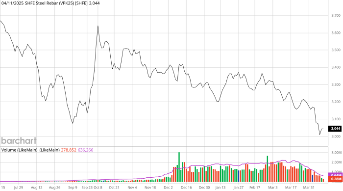 Giá thép thanh kỳ hạn tháng 5 trên Sàn SHFE. Nguồn: Barchart