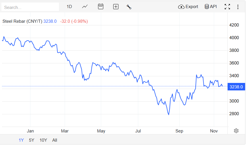 Đối với các nhà sản xuất thép Trung Quốc, năm nay là một năm khó khăn vì lợi nhuận của họ bị ảnh hưởng bởi giá thép giảm trong bối cảnh suy thoái của thị trường bất động sản. Trung Quốc đã công bố các ưu đãi thuế đối với giao dịch nhà đất vào thứ Tư, nhằm mục đích hỗ trợ thị trường bất động sản đang khủng hoảng bằng cách tăng nhu cầu và giảm bớt khó khăn tài chính của các nhà phát triển. Thị trường bất động sản vẫn là thị trường tiêu thụ thép lớn nhất của Trung Quốc mặc dù thị phần của ngành n