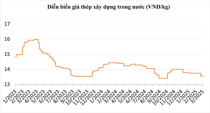 VAS: CB240 - 13.450 đồng/kg, D10 CB300 - 13.550 đồng/kg