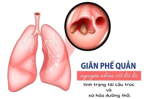 Nguyên nhân cốt lõi gây giãn phế quản là do tái cấu trúc và xơ hóa đường thở.