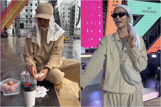 Mới đây, H'Hen Niê đăng tải đoạn clip hậu trường buổi tổng duyệt concert Chị Đẹp, dự kiến sẽ diễn ra trong vài ngày tới. Người đẹp ăn diện đơn giản và bịt khẩu trang kín mít, còn hào hứng khoe rổ trứng luộc được ông xã Tuấn Khôi chuẩn bị cho mang đi tập.