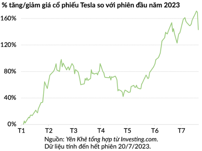 Bất chấp những cảnh báo từ “phe gấu” ở Phố Wall, cổ phiếu Tesla đã tăng hơn 140% từ đầu năm 2023 đến nay, phục hồi mạnh mẽ sau một năm 2022 trồi sụt.