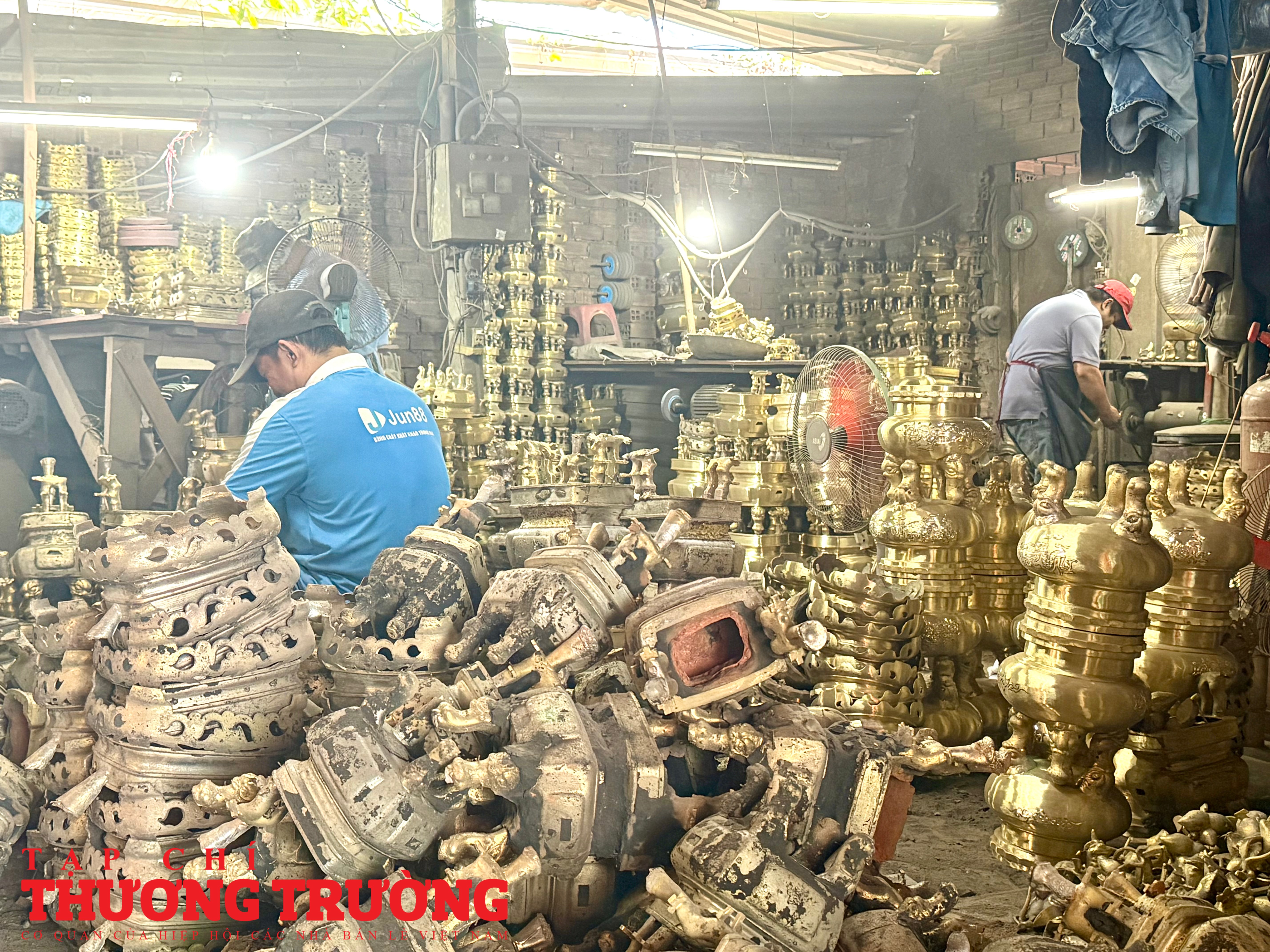 Khung cảnh xưởng lư đồng nằm xen kẽ giữa khu dân cư Gò Vấp. Không gian tuy không lớn nhưng luôn đỏ lửa, chất đầy khuôn đúc, phôi đồng và các sản phẩm đang trong quá trình hoàn thiện – đặc trưng của một làng nghề tồn tại giữa lòng đô thị.