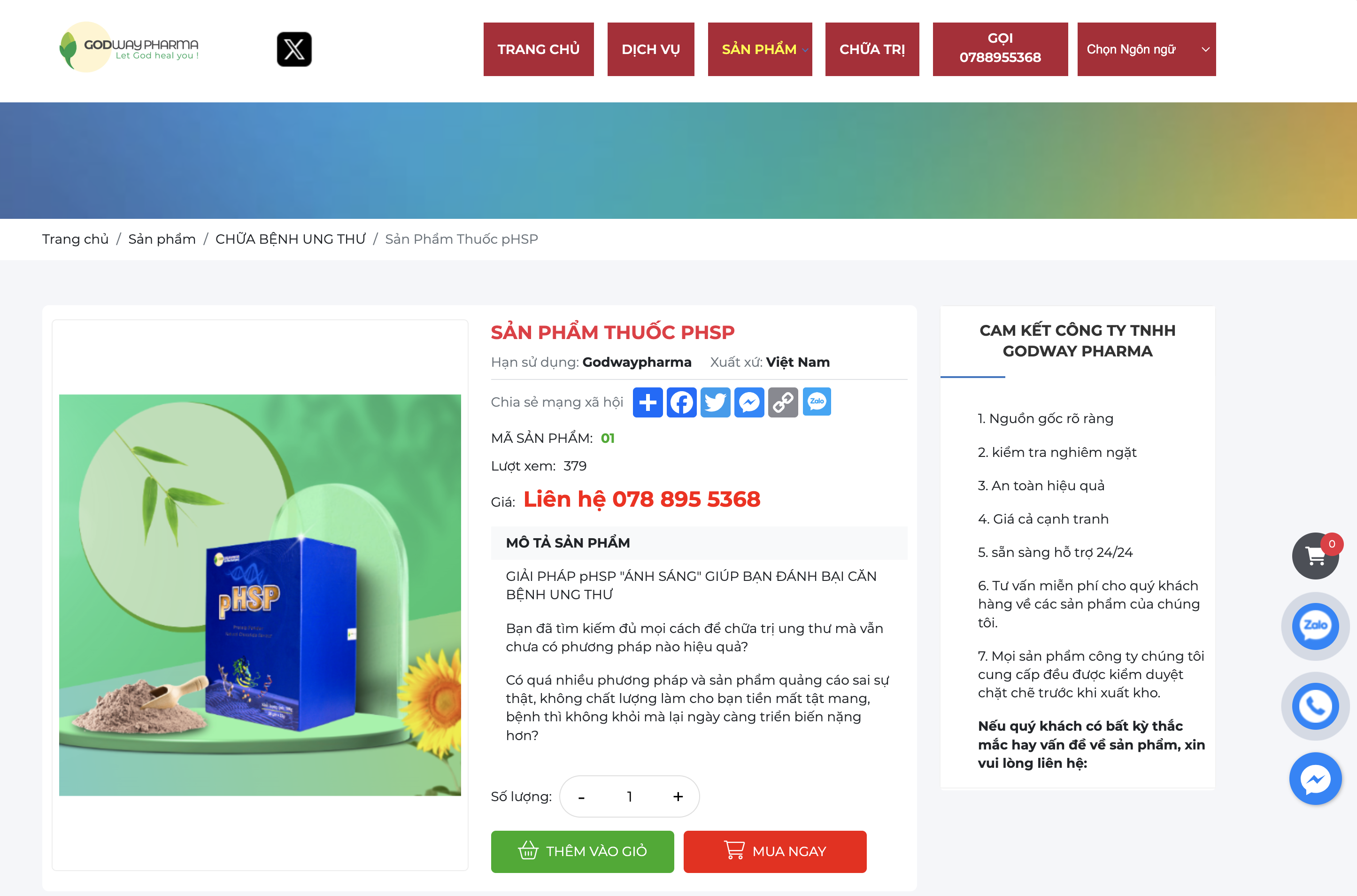 Ngay sau khi bị xử phạt vì vi phạm trong sản xuất thực phẩm bảo vệ sức khỏe, Công ty TNHH GodwayPharma tiếp tục gây chú ý khi phóng viên Tạp chí Thương Trường phát hiện doanh nghiệp này quảng cáo sản phẩm pHSP như một loại thuốc đặc trị ung thư. Những tuyên bố mang tính "thần dược" đã vượt ranh giới pháp luật và chạm tới giới hạn đạo đức trong ngành chăm sóc sức khỏe.