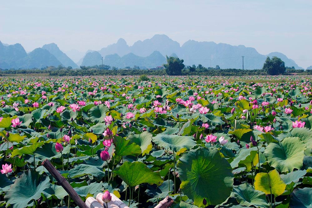 Đầm sen được bao quanh bởi núi đá thích hợp để phát triển du lịch
