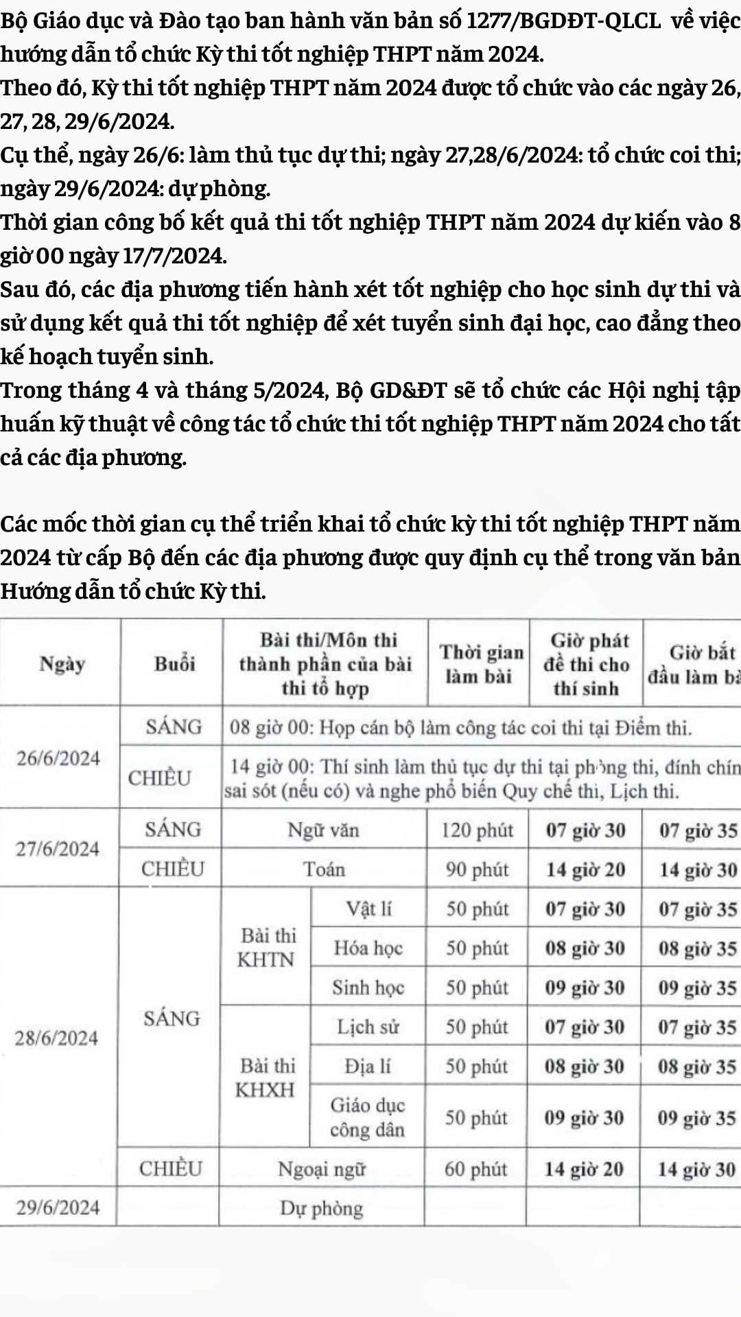 Trước đó, Bộ Giáo dục và Đào tạo ban hành văn bản về việc hướng dẫn tổ chức Kỳ thi tốt nghiệp THPT năm 2024.