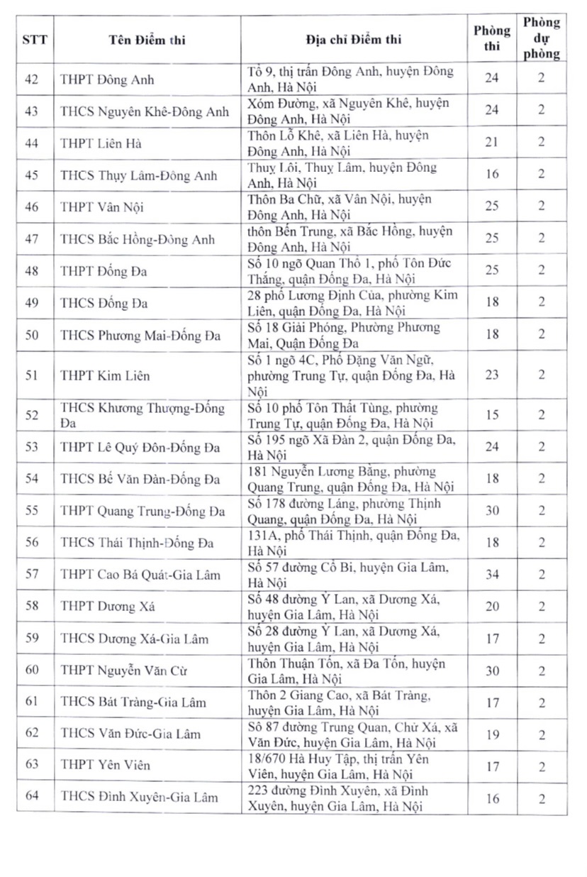 Theo danh sách được công bố, điểm thi có nhiều phòng thi nhất là Trường Trung học Phổ thông Chuyên Hà Nội-Amsterdam với 43 phòng.