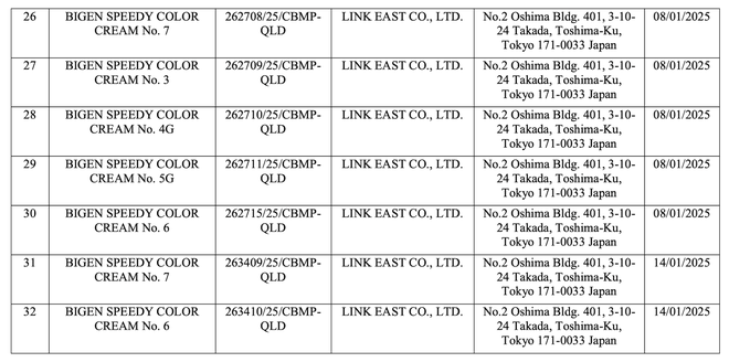 Các sản phẩm bị thu hồi đều do LINK EAST CO., LTD (Nhật Bản) sản xuất, bao gồm nhiều nhãn hiệu quen thuộc với người tiêu dùng như Anessa, Hadalabo, DHC, Bigen, Eyebon, Skin Vape, Muhi… Một số trong đó mới chỉ được cấp số công bố từ tháng 1/2025.