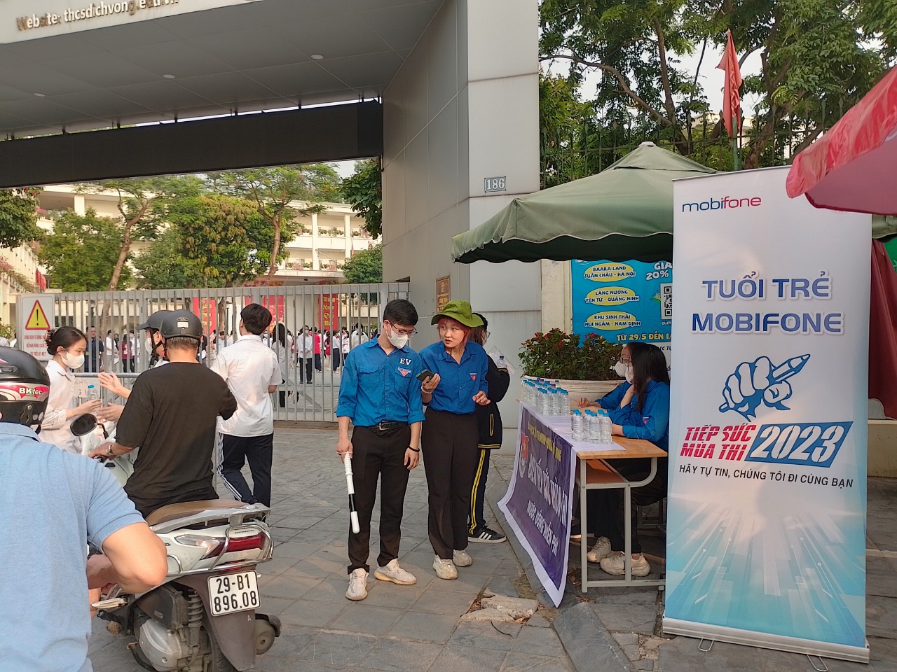 Ghi nhận của phóng viên Thương Trường tại Hội đồng thi Trường THCS Dịch Vọng và Trường THPT Cầu Giấy của quận Cầu Giấy. Lực lượng Công an, Điện lực, Y tế, thanh niên tình nguyện đến từ rất sớm để đảm bảo an ninh, an toàn, đón tiếp và hướng dẫn thí sinh tra số báo danh, phòng thi.