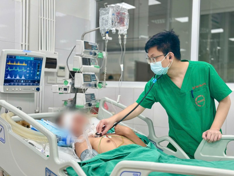 Khi nhập viện, bệnh nhân trong tình trạng nhiễm trùng toàn thân, tổn thương thần kinh nặng nề, phải thở máy kéo dài. Dù đã được cai máy thở thành công, nhưng ý thức không phục hồi. Hiện bệnh nhân không thể tự ăn uống hay vận động, hoàn toàn phụ thuộc vào chăm sóc của gia đình.