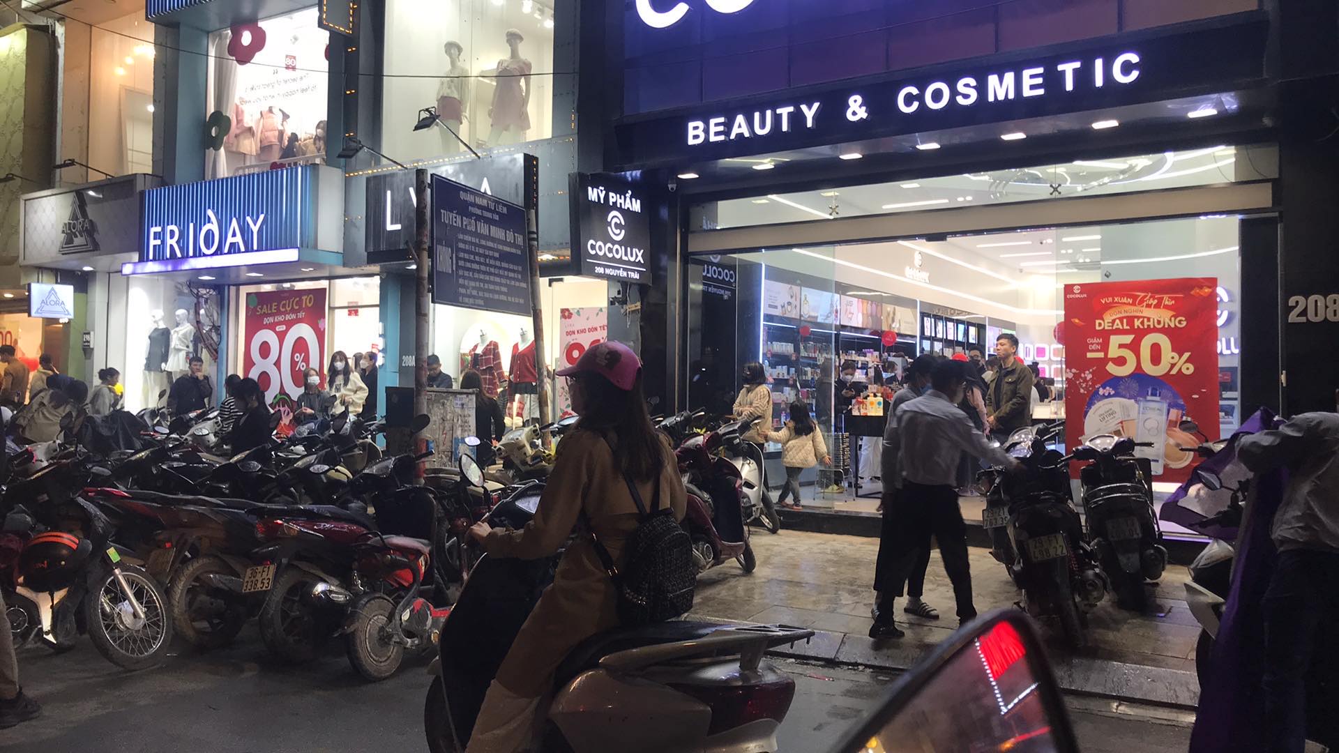 Theo ghi nhận của phóng viên tối 25 tháng Chạp (4/2), dòng người đổ xô về các con phố thời trang như phố Chùa Bộc (quận Đống Đa, Hà Nội), Nguyễn Trãi (Thanh Xuân) Cầu Giấy để mua sắm quần áo, giày dép. Nhiều ngày nay, các tuyến phố này luôn trong cảnh tắc nghẽn kéo dài vì khách bủa vây các cửa hàng đang khuyến mại, giảm giá kịch sàn trước khi nghỉ Tết.