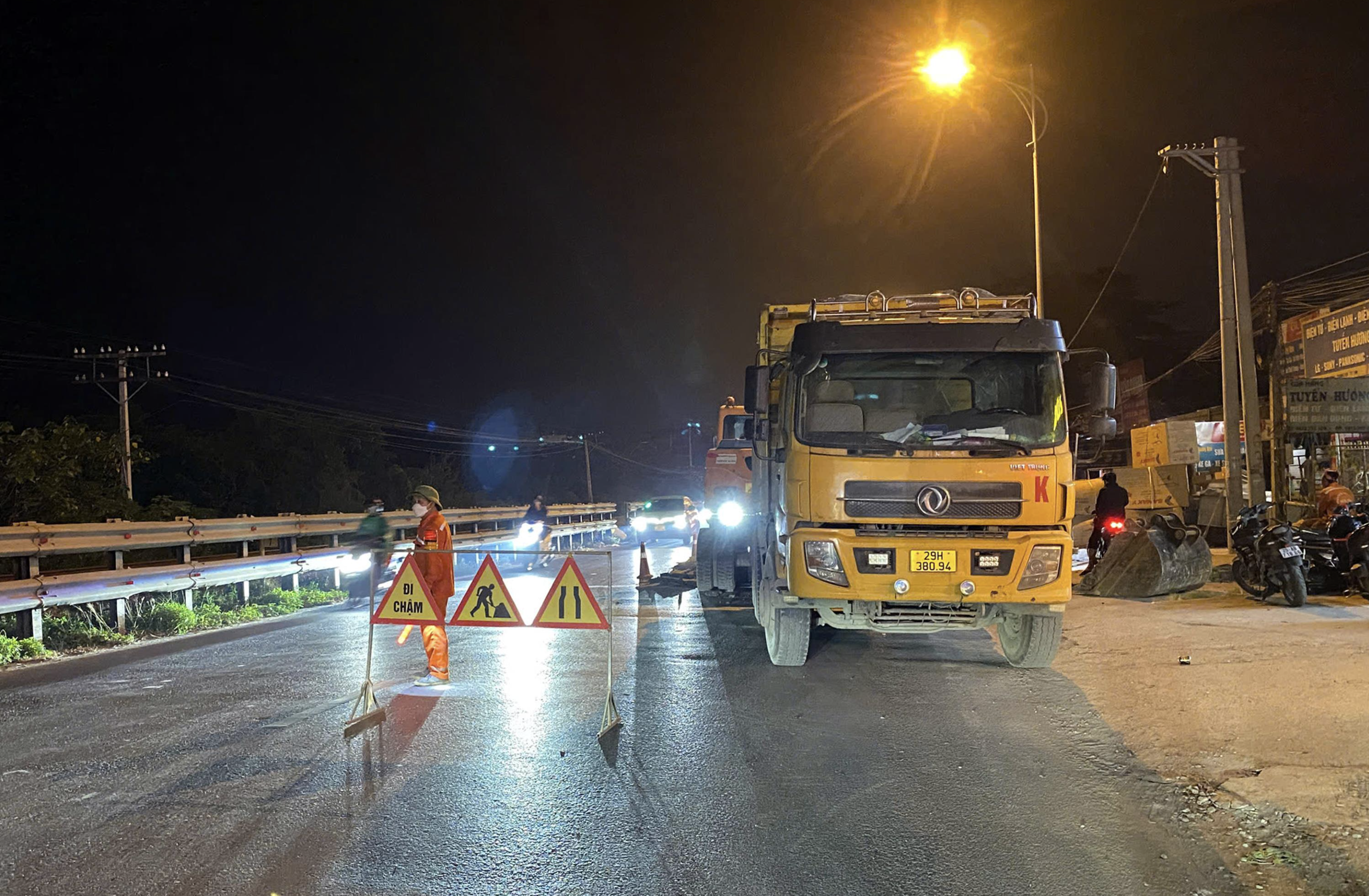 Đồng thời, yêu cầu cầu chủ đầu tư thu dọn toàn bộ vật tư vật liệu tập kết đúng nơi quy bảo đảm an toàn giao thông và vệ sinh môi trường; Đẩy nhanh tiến độ thi công, thu hồi rào chắn và bố trí đầy đủ lực hướng phối hợp với các lực lượng chức năng để tổ chức hướng dẫn phân luồng, giao thông trong quá trình thi công trên QL1A không để xảy ra ùn tắc giao thông; trong quá trình thi công nếu để xảy ra tai nạn giao thông Chủ đầu tư phải chịu hoàn toàn trách nhiệm trước pháp luật.