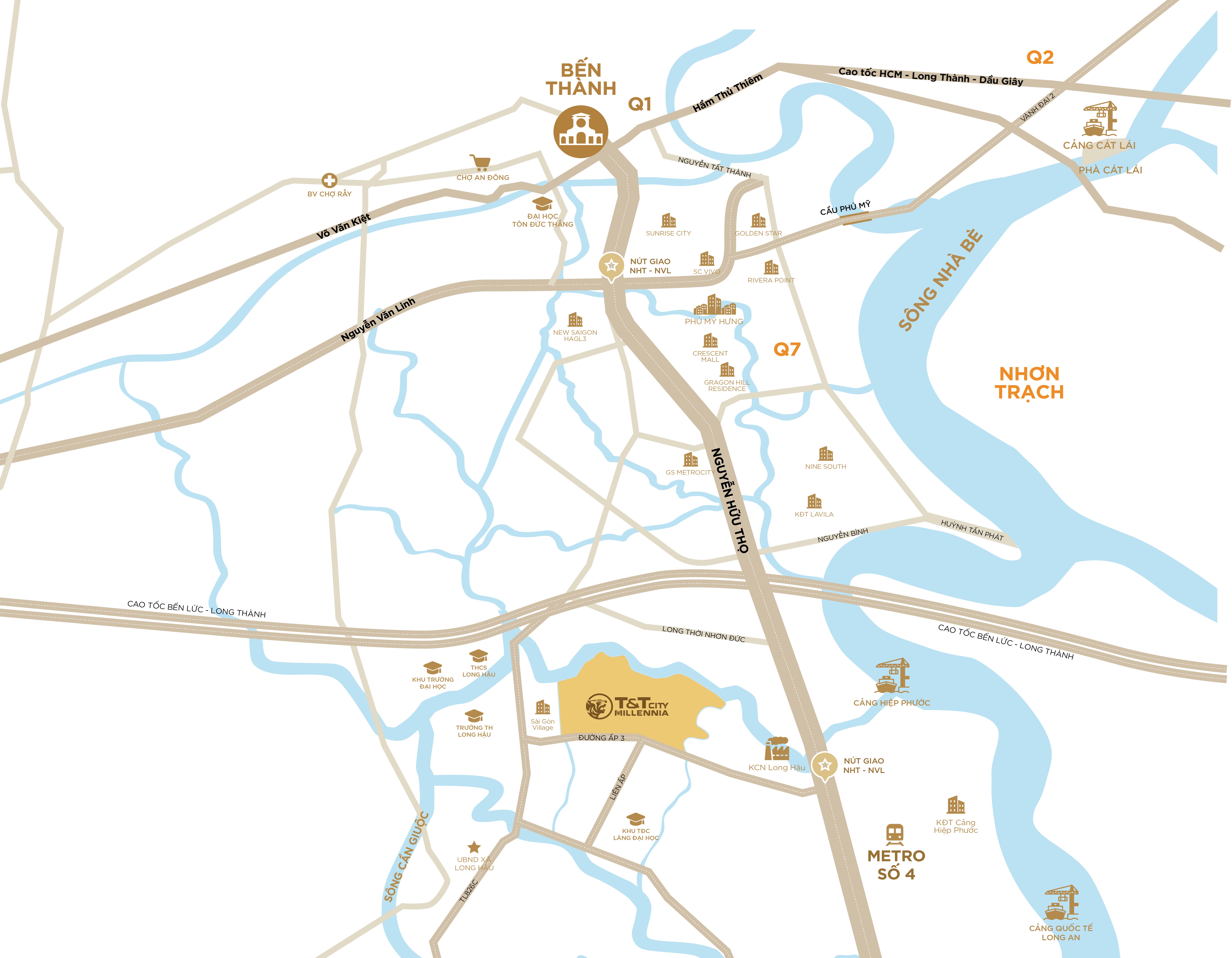 T&T City Millennia sở hữu vị trí đắc địa cùng lợi thế thừa hưởng từ hạ tầng tỷ đô phía Nam Sài Gòn.