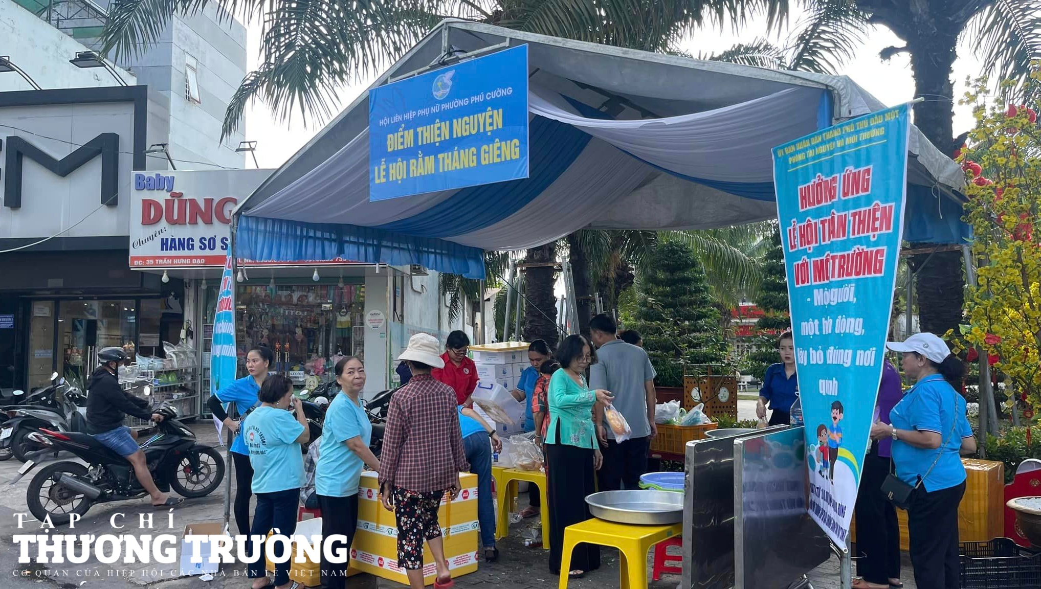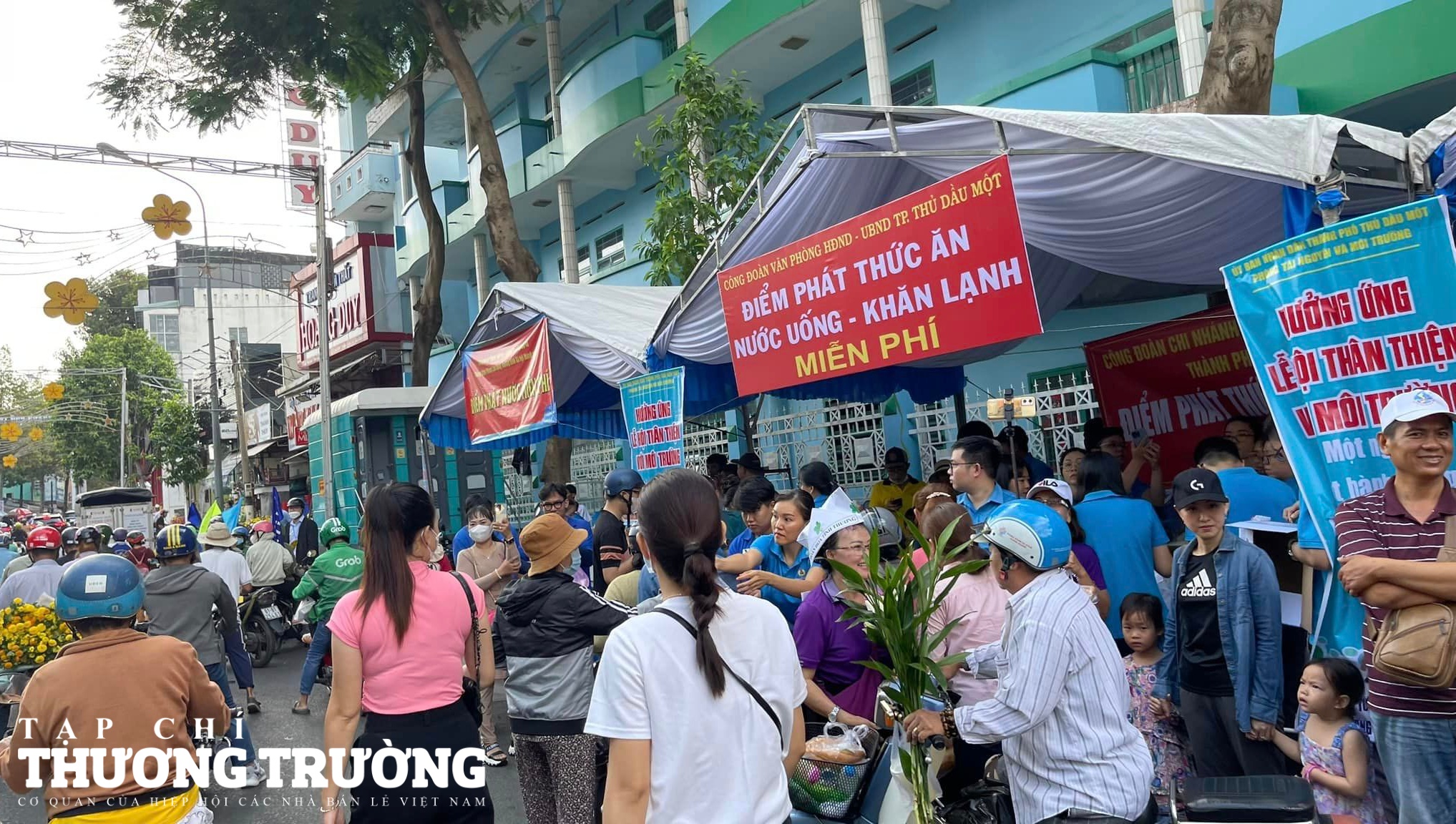 Nhiều quầy hàng miễn phí cho người dân khi tham gia lễ hội tại Bình Dương.