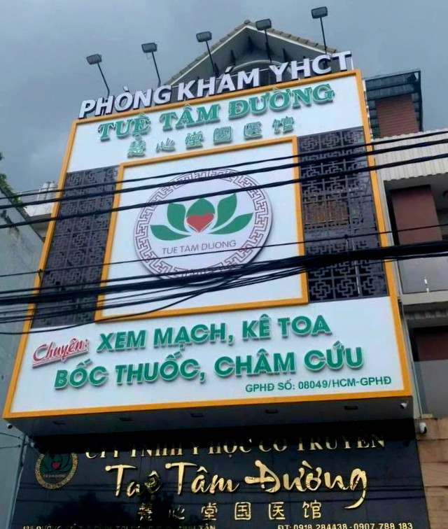Công ty TNHH Y học Cổ truyền Tuệ Tâm Đường (135 Đường số 7, phường An Lạc, TP.HCM) cũng bị xử phạt 48 triệu đồng vì nhiều sai phạm như ghi tên khoa phòng không đúng giấy phép, không niêm yết giá dịch vụ khám chữa bệnh, biển hiệu không đầy đủ thông tin, không bảo đảm thuốc cấp cứu và kinh doanh hàng hóa không rõ nguồn gốc với giá trị hơn 8,2 triệu đồng. Ngoài xử phạt hành chính, cơ sở bị tước chứng chỉ hành nghề và giấy phép hoạt động trong 3 tháng, đồng thời buộc tiêu hủy tang vật vi phạm.