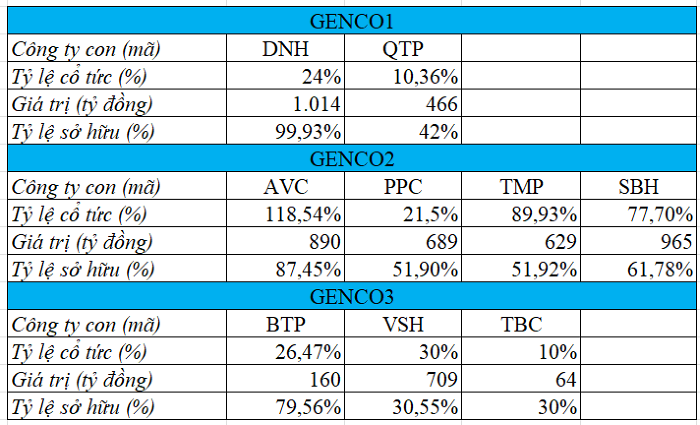 Một số công ty thành viên trả cổ tức về các GENCO. Nguồn: HL tổng hợp.