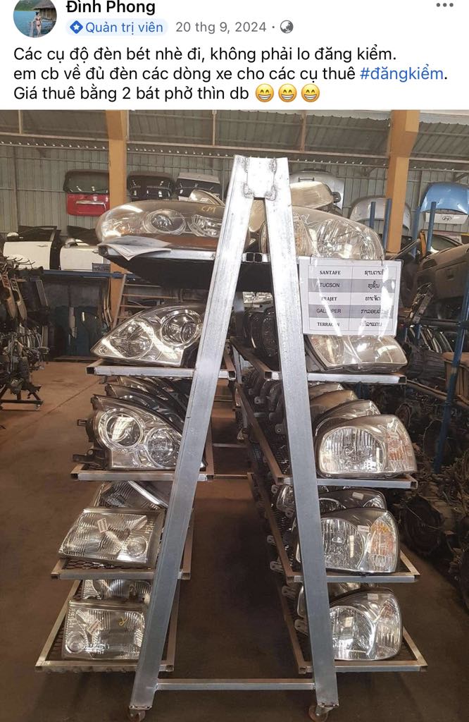 Một tài khoản quảng cáo có đủ các loại đèn xe ô tô chính hãng để thay thế khi khách cần đi đăng kiểm.