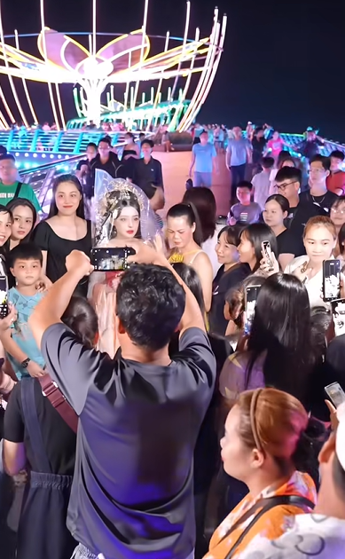 Theo đó, thay vì hóa thân búp bê rồi quay clip, bạn gái Lương Bằng Quang "chơi lớn" khi hóa trang lồng lộn, đứng bất động giữa dòng người đông đúc. Màn xuất hiện độc đáo này nhanh chóng chiếm trọn spotlight, khiến dân tình chú ý về phía nữ DJ.