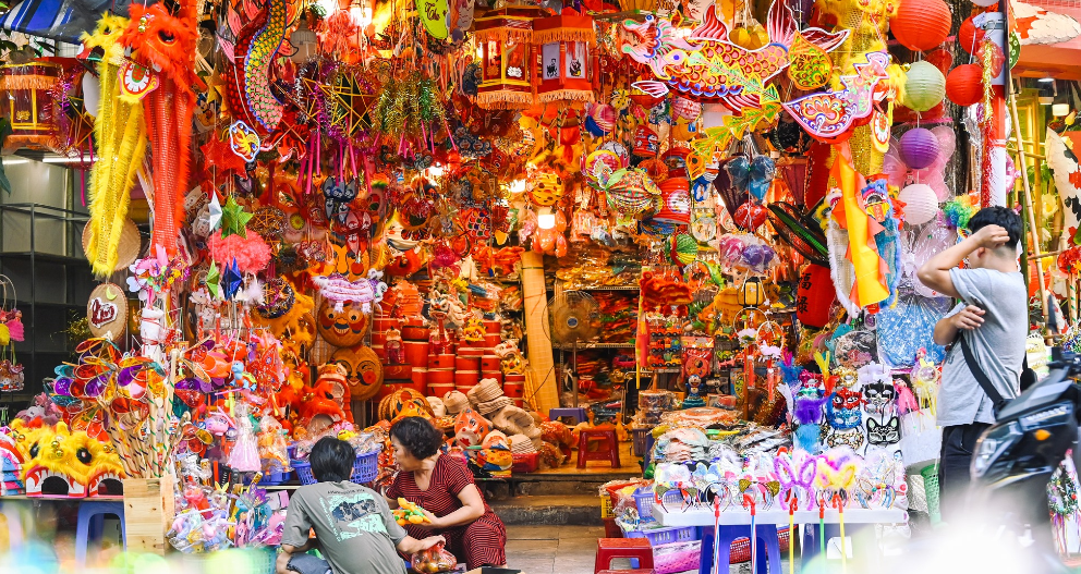 Theo khảo sát của phóng viên Tạp chí Thương Trường tại phố Hàng Mã, Hà Nội: vô số món đồ trang trí, đồ chơi Trung thu từ truyền thống đến hiện đại dành cho trẻ em đang “hút khách”. Những đồ trang trí đèn lồng cỡ lớn được được tạo hình đa dạng như hình bướm, cá chép, ông sao,... với đầy đủ màu sắc rực rỡ.