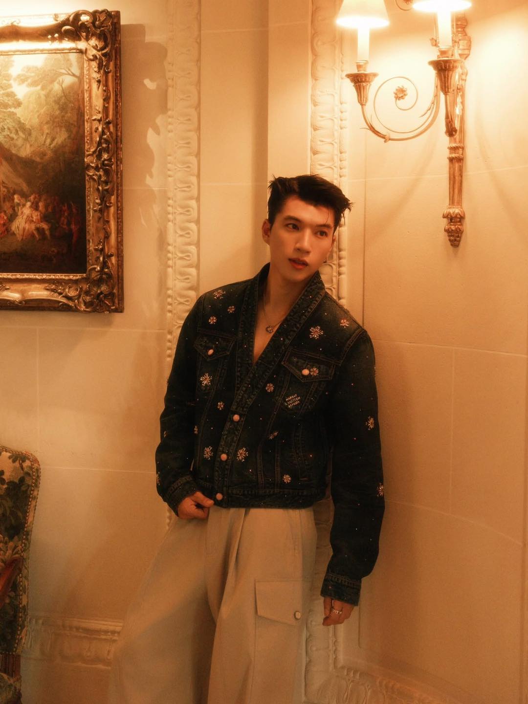 Xuất hiện ở sự kiện, nam rapper diện áo denim đính họa tiết đá phối với quần thụng khoe visual "đỉnh nóc".