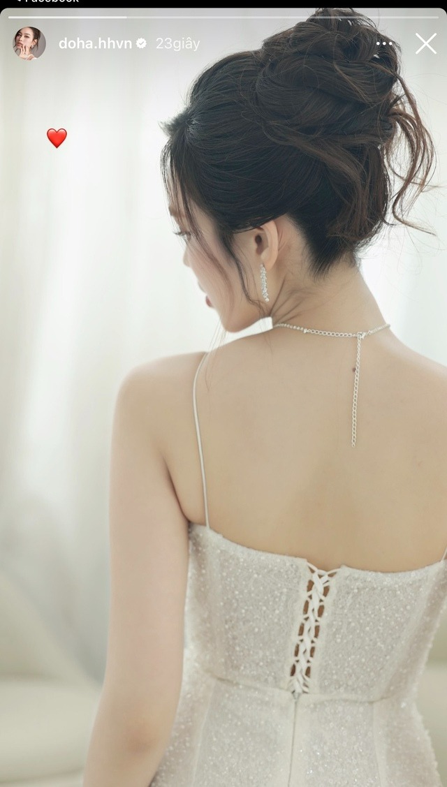 Tháng 4/2024, giữa lúc lộ loạt hint hẹn hò bạn trai thiếu gia, người đẹp khiến cư dân mạng rần rần khi đăng tải bức hình chụp từ phía sau, trên người mặc trang phục màu trắng lấp lánh như váy cưới cô dâu, khoe bời vai đẹp không tỳ vết.