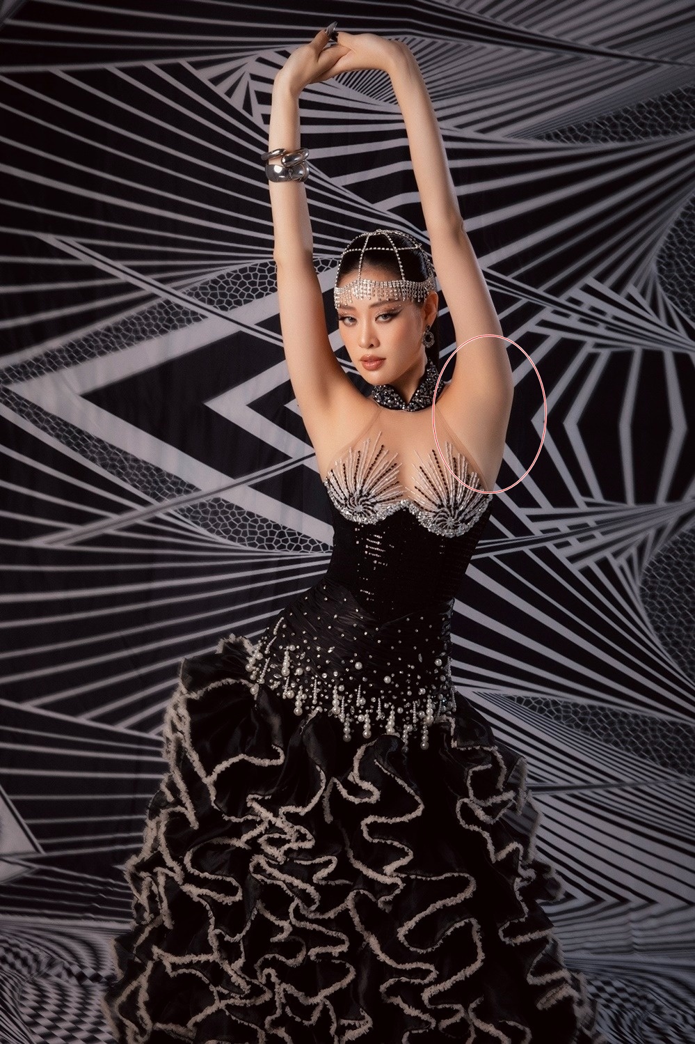 Tuy nhiên, người đẹp mất điểm bởi một chi tiết mà nhiều mỹ nhân cũng mắc phải đó chính là việc photoshop quá đà. Phần nách của Khánh Vân bỗng dưng được "cà mịn" không tì vết khiến cho bức ảnh trở nên "giả trân" hơn bao giờ hết.