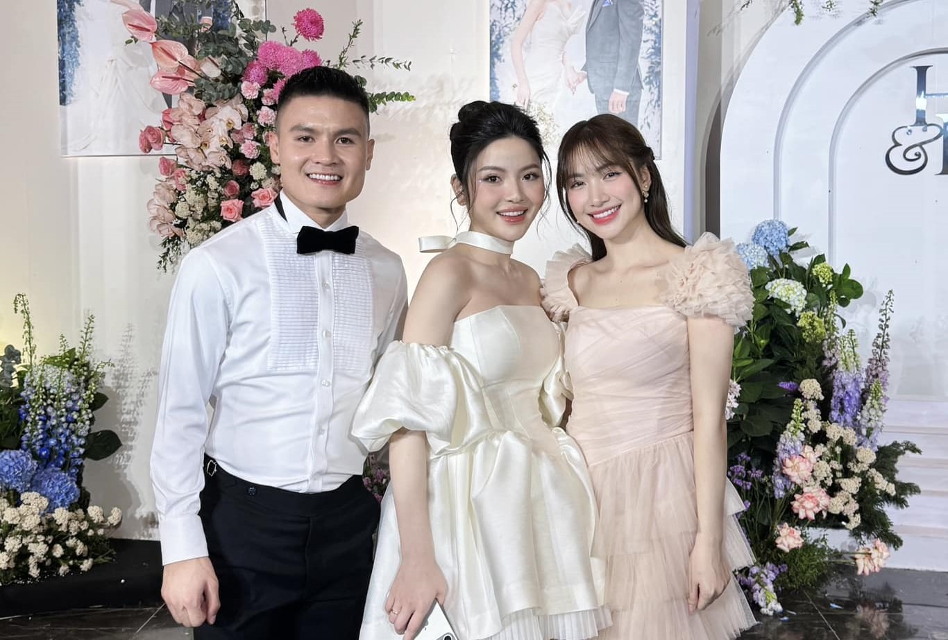 Ngoài bạn bè là nghệ sĩ, Hòa Minzy khá thân thiết với anh em làng bóng. Người đẹp dự đám cưới cầu thủ Quang Hải.