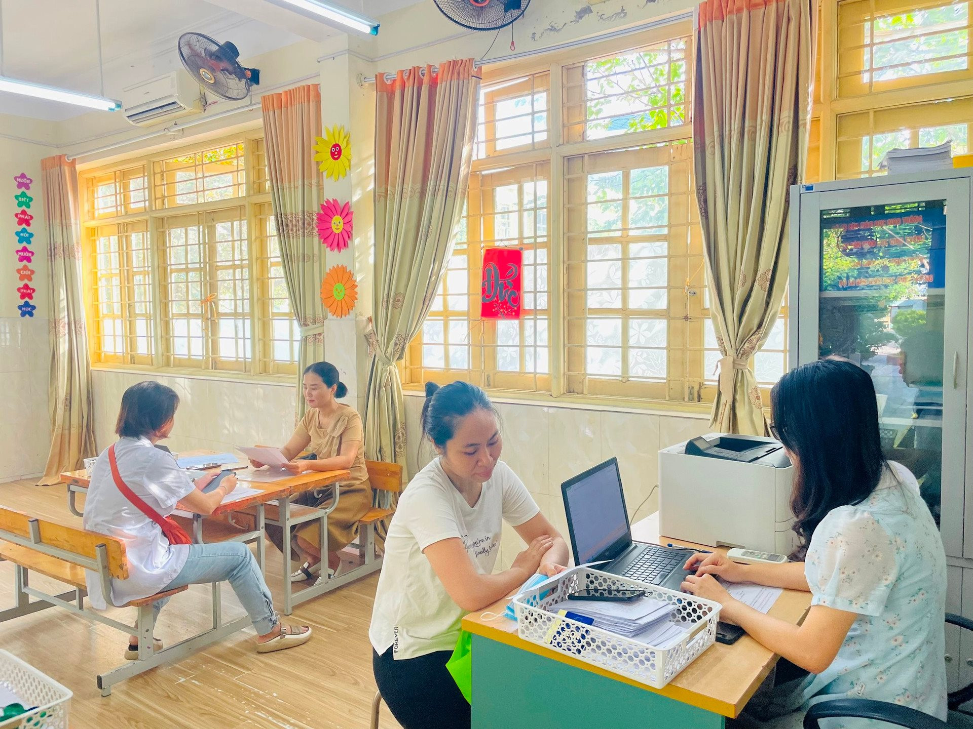 Các nhà trường bố trí bộ phận thường trực hướng dẫn cha mẹ học sinh trong tuyển sinh trực tuyến.