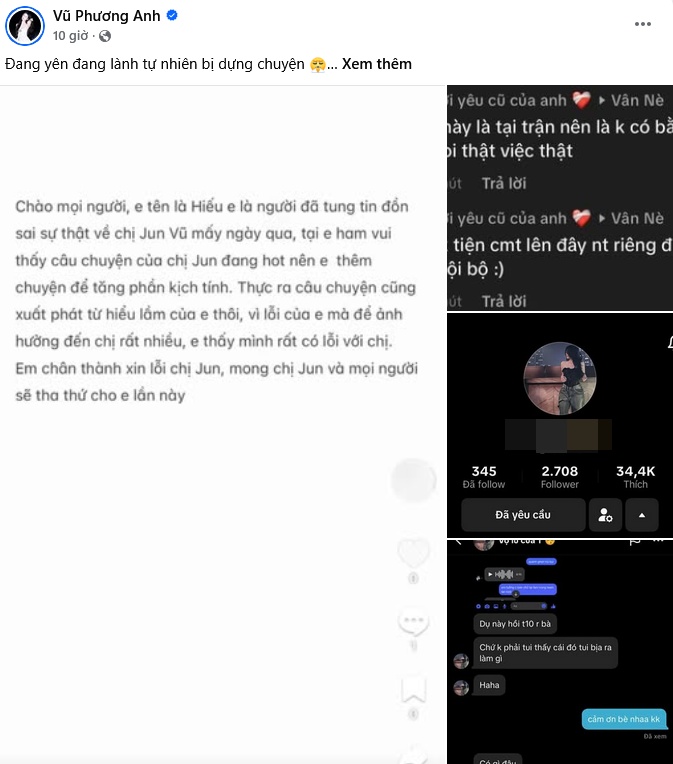 Người này cũng đã lên tiếng xin lỗi cô khép lại ồn ào. Hiện tại, Jun Vũ vẫn cập nhật cuộc sống và công việc đời thường trên trang cá nhân.