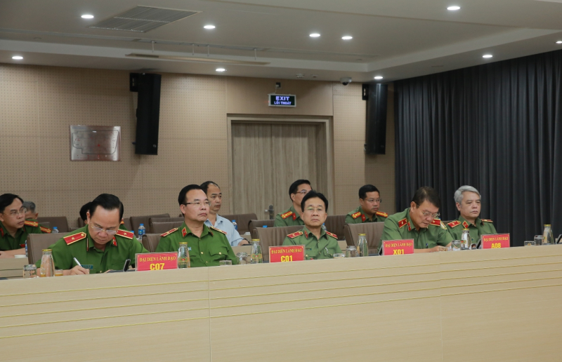 Đại diện các cục chức năng của Bộ Công an tham dự buổi họp báo.