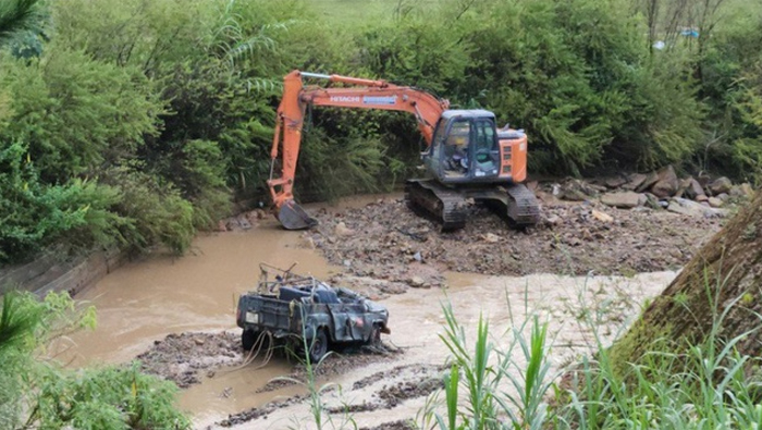 Hiện trường lũ cuốn lật xe ô tô tại khu du lịch Cù Lần thuộc huyện Lạc Dương, tỉnh Lâm Đồng.