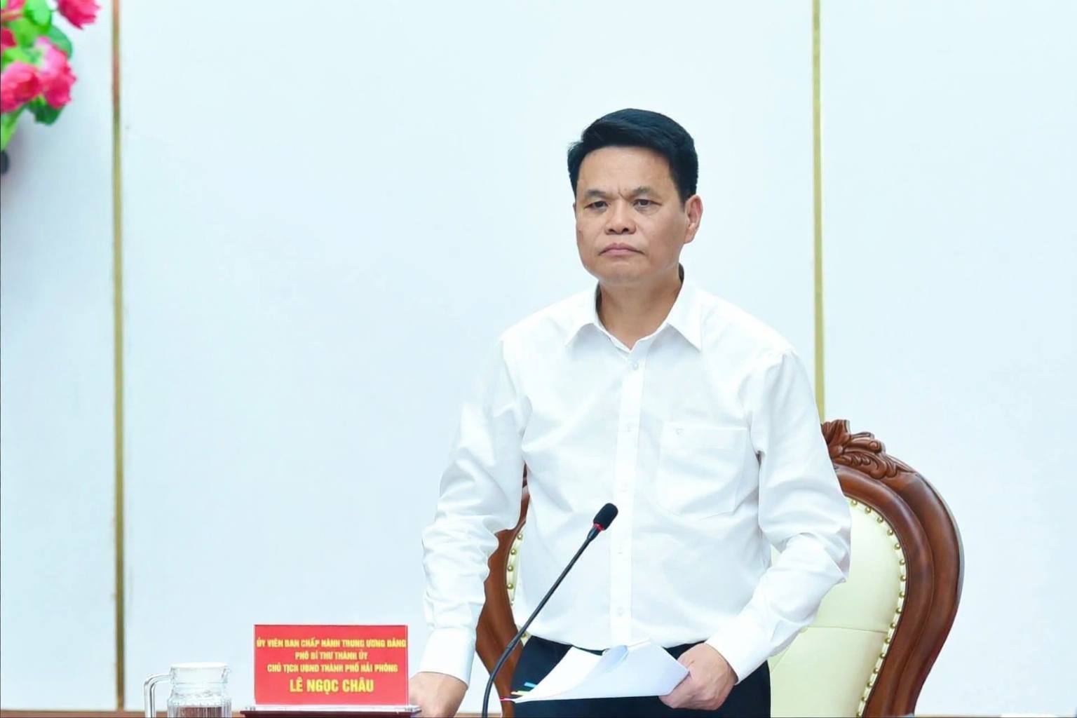 Ông Lê Ngọc Châu, Ủy viên Trung ương Đảng, Phó Bí thư Thành ủy, Chủ tịch UBND thành phố, chủ trì cuộc họp. Ảnh Báo Hải Phòng